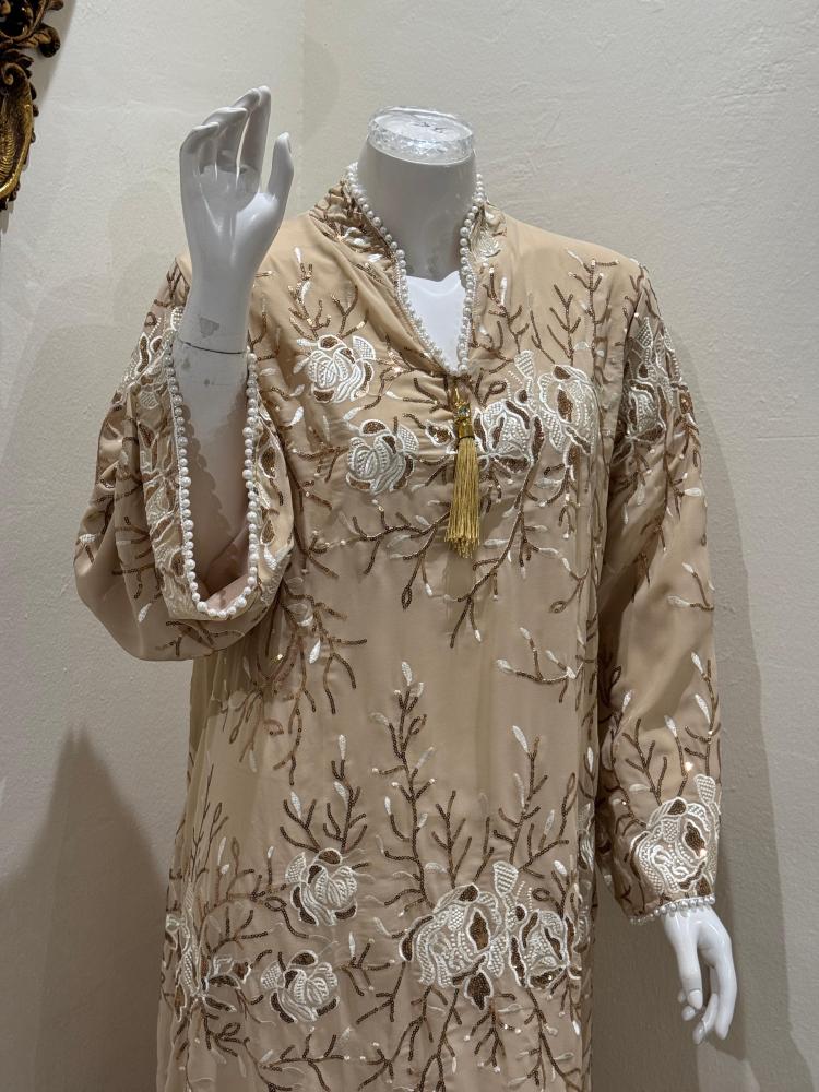 الوصف: تألقي بإطلالة لا مثيل لها مع هذه الجلابية الفريدة، التي تتميز بتصميم عصري وأنيق. مصنوعة من قماش عالي الجودة، وتتميز بتطريزات دقيقة تضفي عليها لمسة من الفخامة. مثالية للمناسبات الخاصة والأمسيات الراقية ✨.