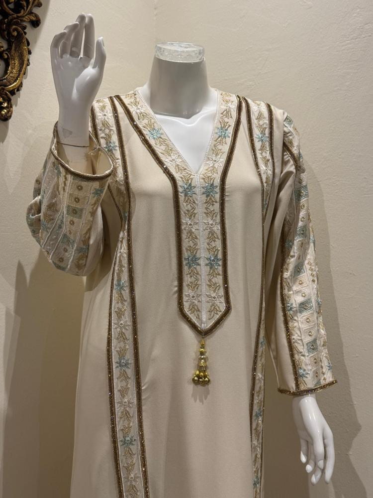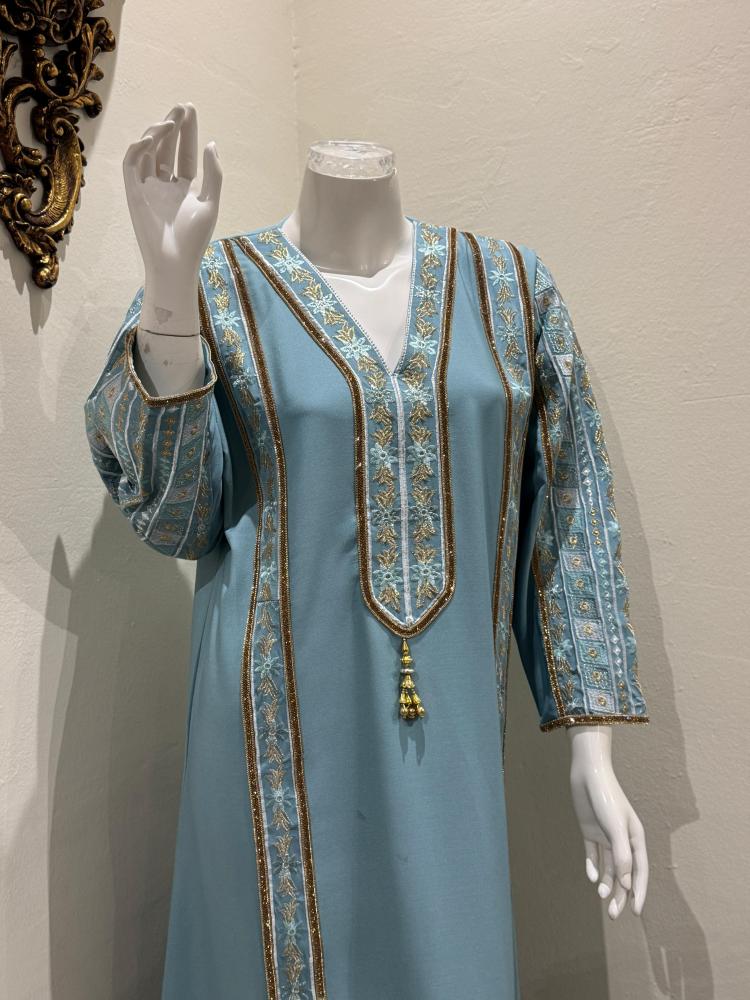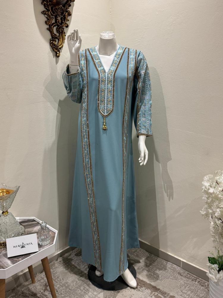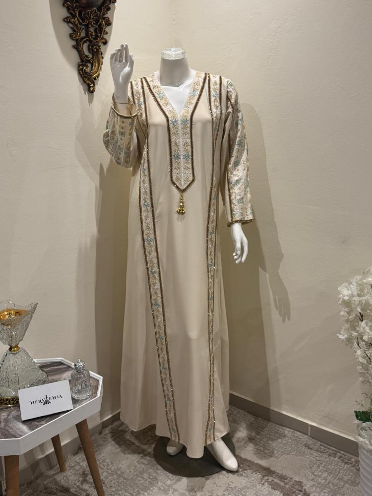 الوصف: تألقي بإطلالة عصرية وجذابة مع هذه الجلابية الأنيقة، التي تتميز بتصميم فريد يجمع بين البساطة والأناقة. مصنوعة من قماش ناعم ومريح، وتتميز بتطريزات دقيقة تضفي عليها لمسة من الفخامة. مثالية للمناسبات المختلفة والأمسيات الراقية ✨.