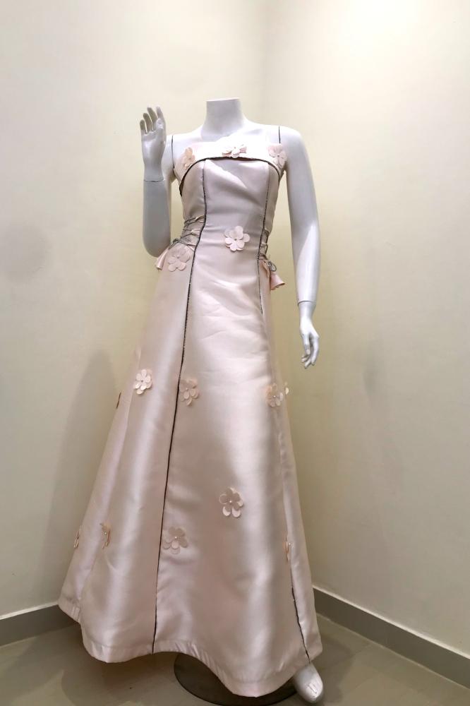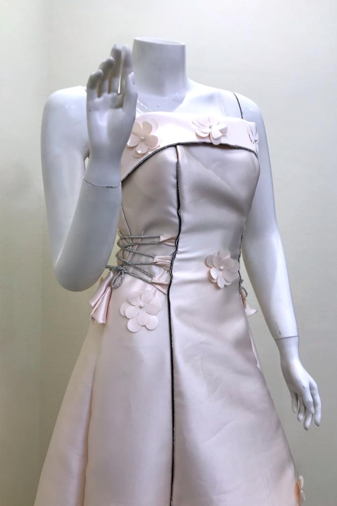 هذا الفستان الراقي يتميز بتطريز زهري معقد ينساب برقة عبر القماش. تم تصميمه بأسلوب حديث وأنيق، حيث يتماشى مع المنحنيات بأناقة. يتميز برقبة دائرية تكمل التصميم الخالي من الأكمام، مما يضفي جاذبية خالدة. يصل طول الفستان إلى ما يعادل منطقة الكاحل على الفرد. يعتبر هذا التصميم مناسبًا للمناسبات الرسمية المختلفة