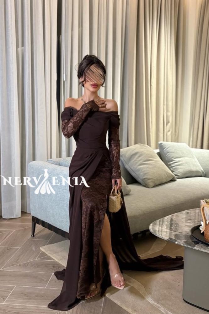 * التصميم: قصة "أوف شولدر" مع أكمام دانتيل طويلة.