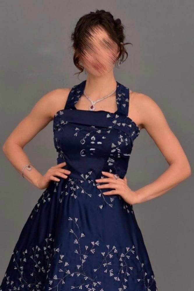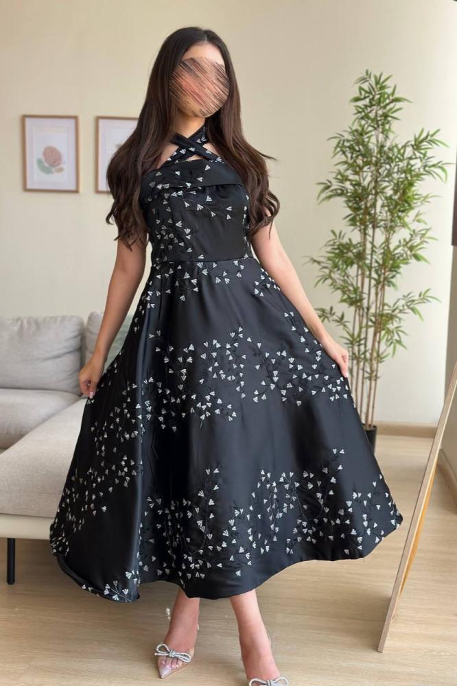 - التفاصيل: مزين بتطريز زهري دقيق على كامل الفستان.